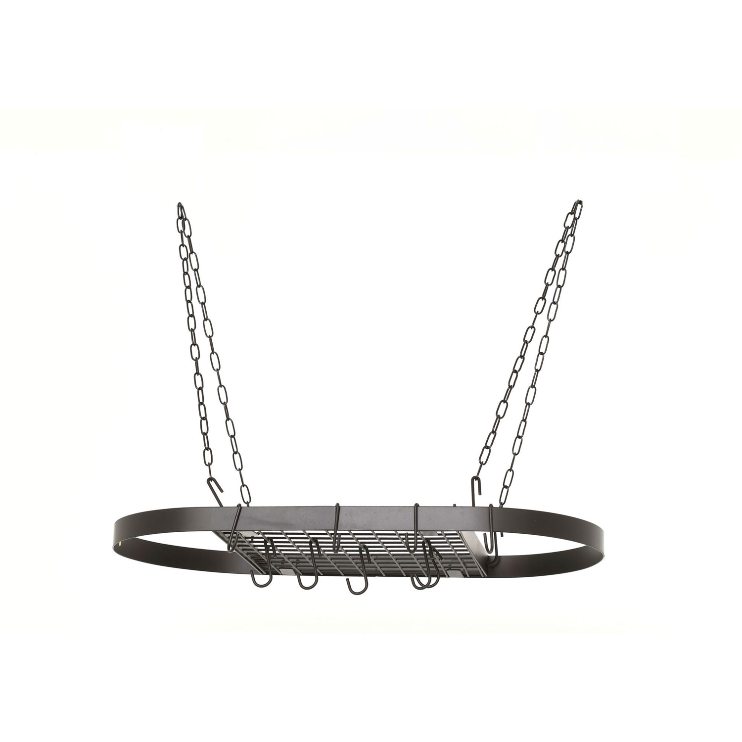 Oval Hanging Pot Rack with Chains and 2 Hooks in Matte Black Oval Hanging Pot Rack with Chains and 2 Hooks in Matte Black